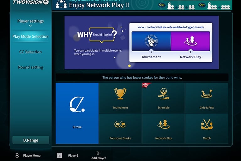 Network Play is the only Real-time Multiplayer Gameplay on the market. Up to 6 golfers can play simultaneously on the same course. Players can compete with others on up to 6 simulators in 6 different locations across the globe as long as they are under the same server zone.